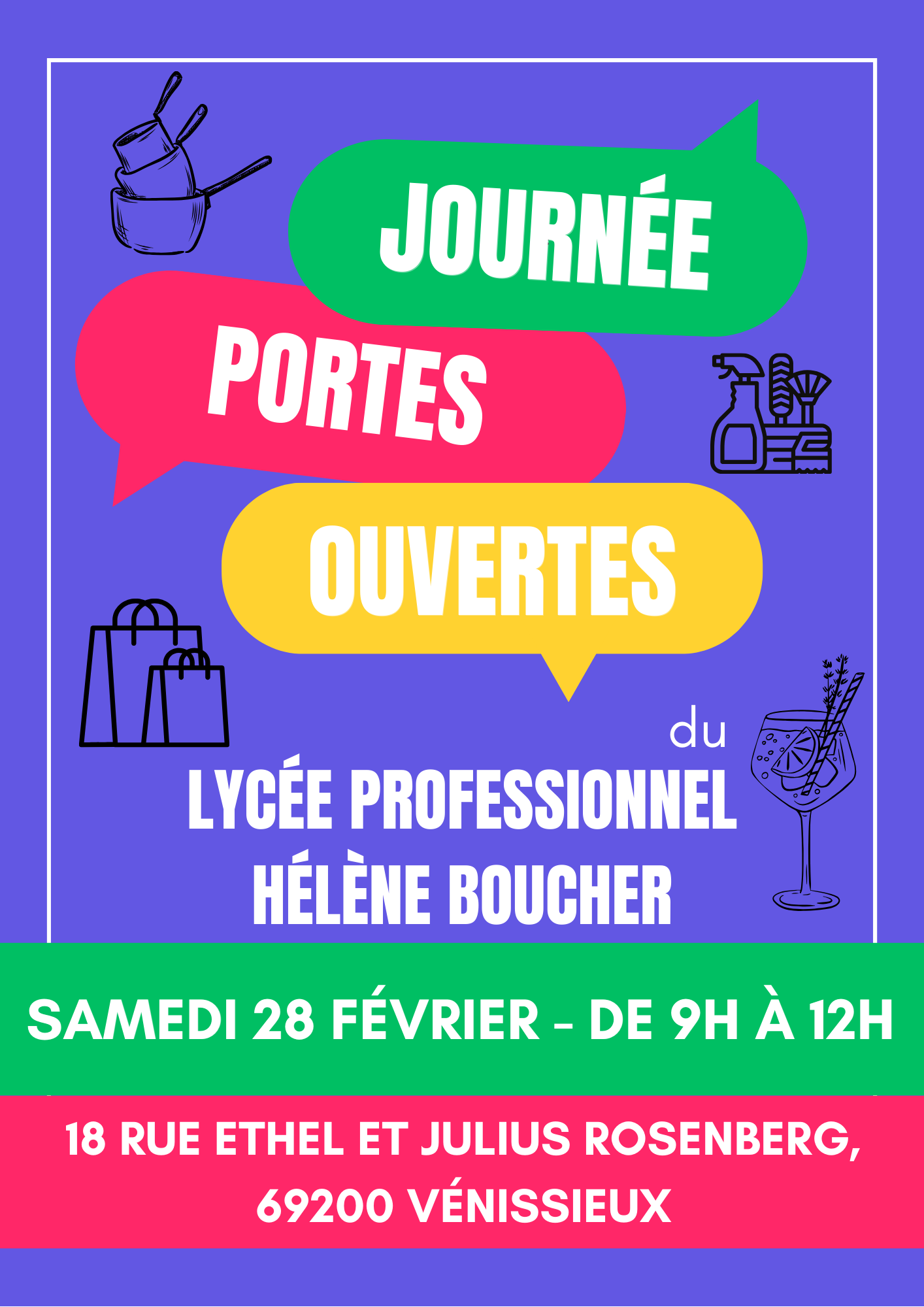 Ce samedi 28 février, de 9h00 à 12h00, venez découvrir le lycée professionnel Hélène Boucher ! Elèves et enseignants seront heureux de vous accueillir.