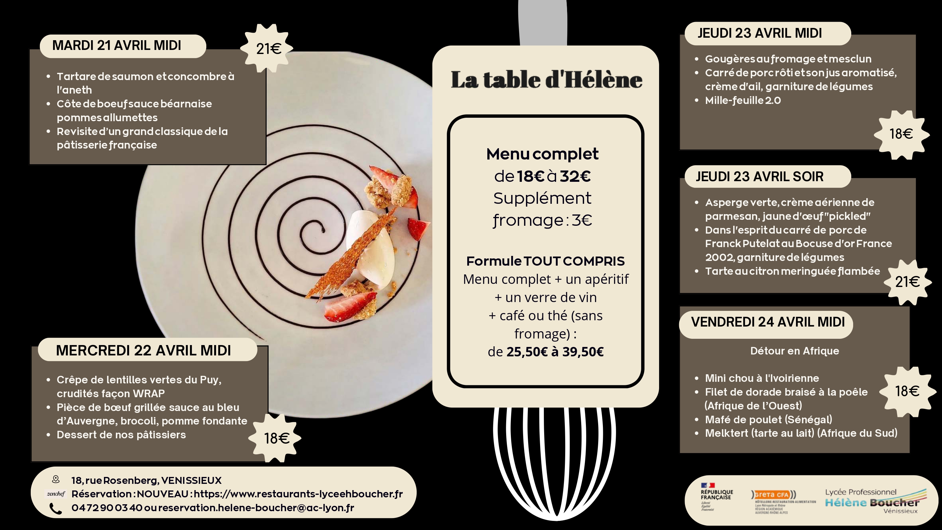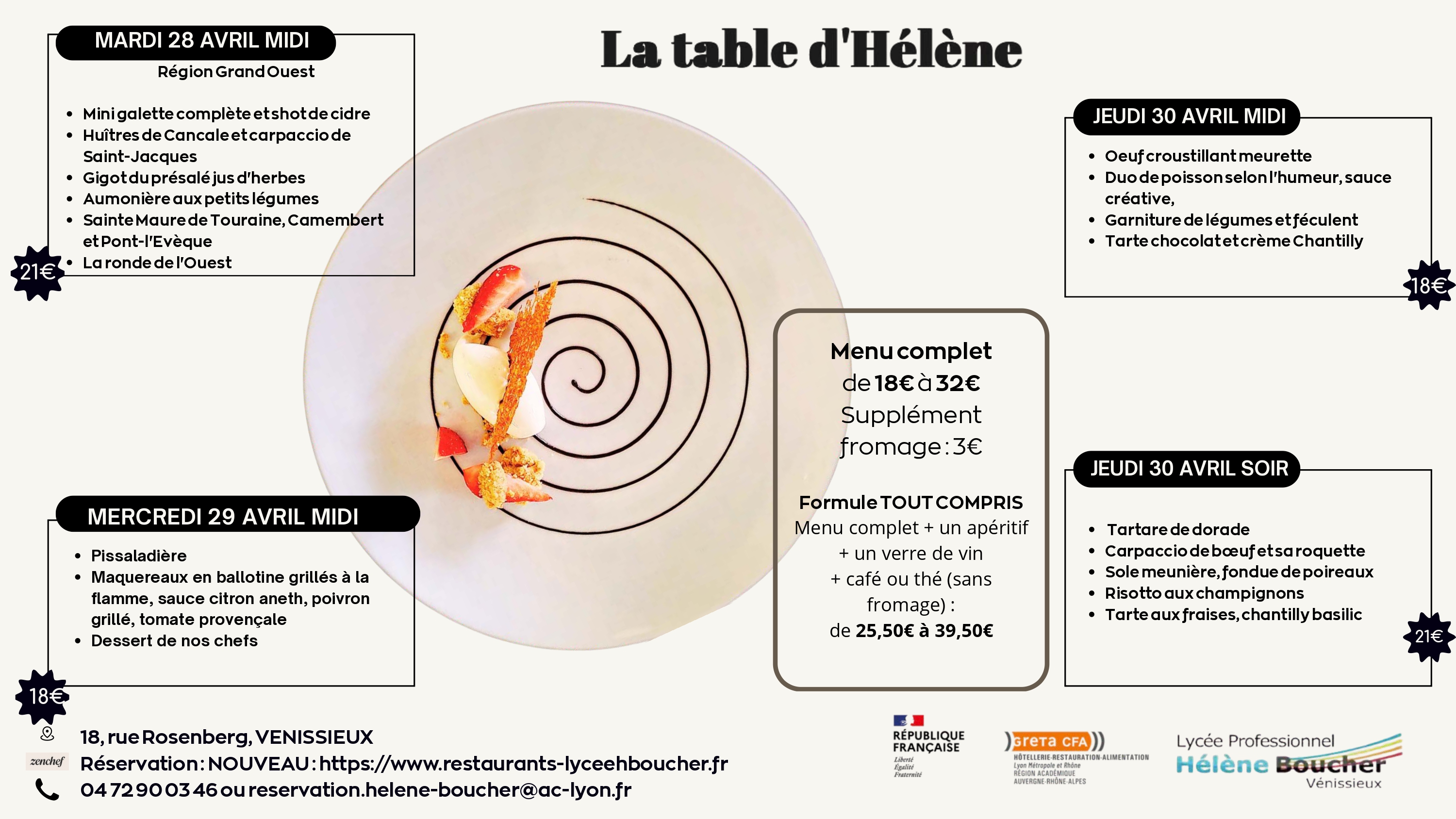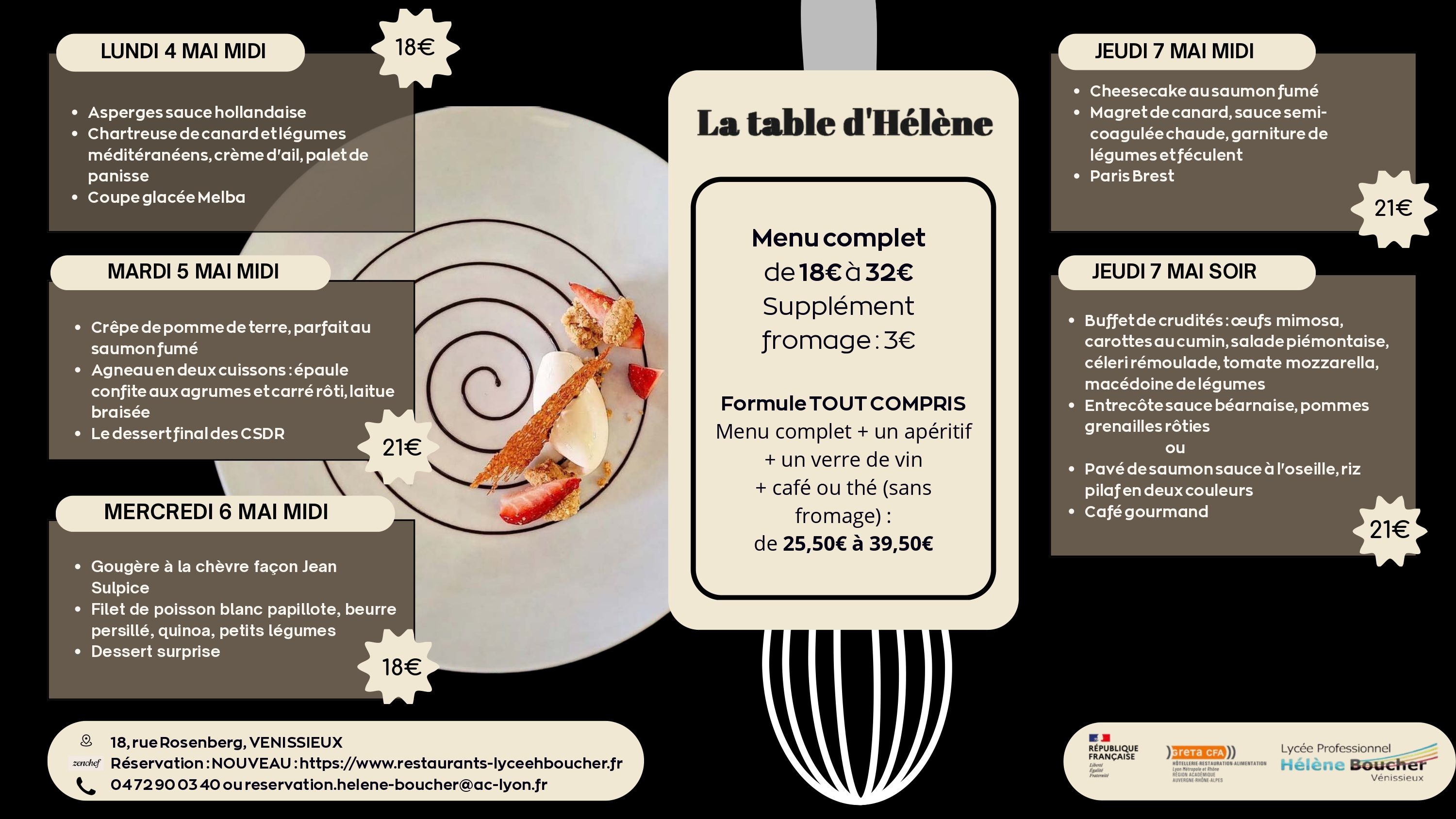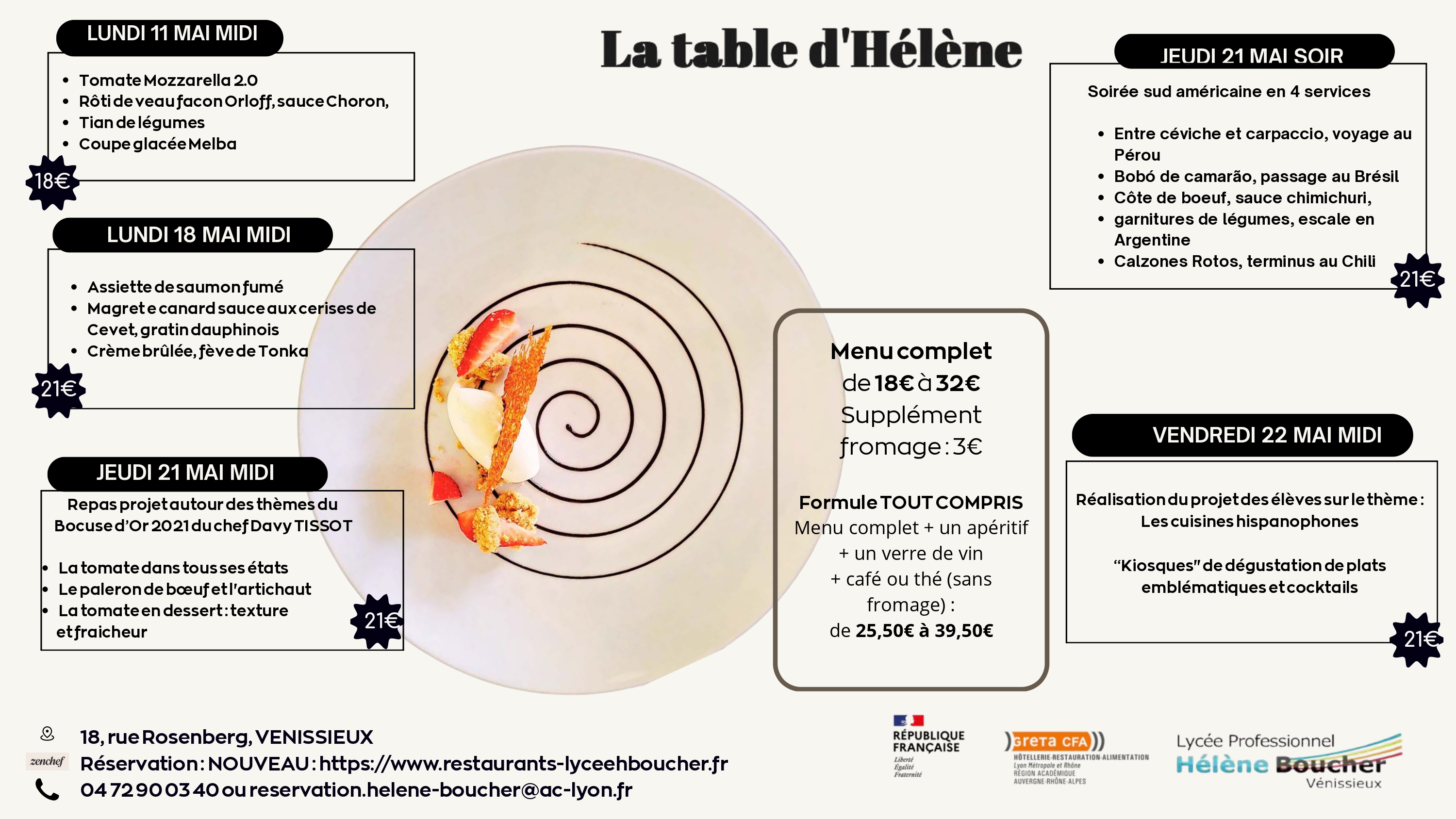 Réservation par téléphone (04 72 90 03 46) ou par mail (reservation.helene-boucher@ac-lyon.fr).